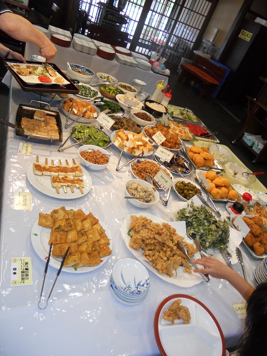 豆腐やおから、大豆など豆腐関連の料理から季節の野菜や山菜などの料理が食べ放題です。