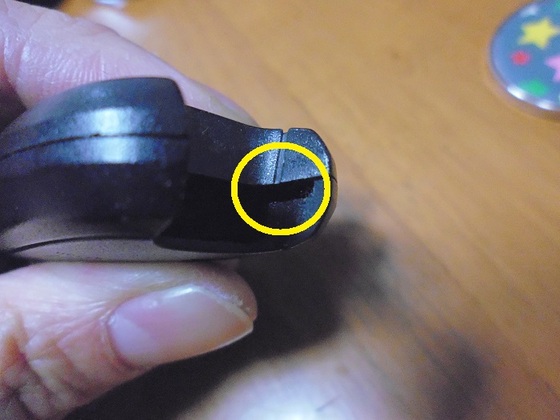 抜いた内側の黄色い丸で囲んだ部分の両側が、マイナスドライバーでこじれるようになっています。