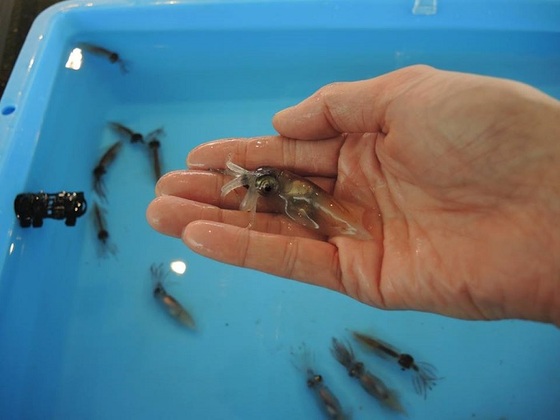 こんな感じに生きたホタルイカを触ったりすることもできます。